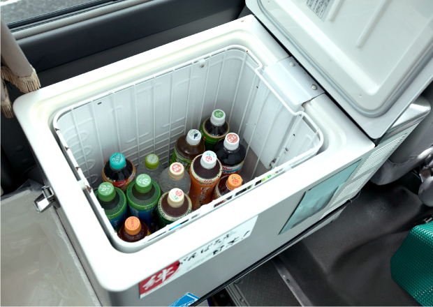 乗り込みやすいサイドドア付近には、飲み物等の温度を保てる温冷庫を設置しています。